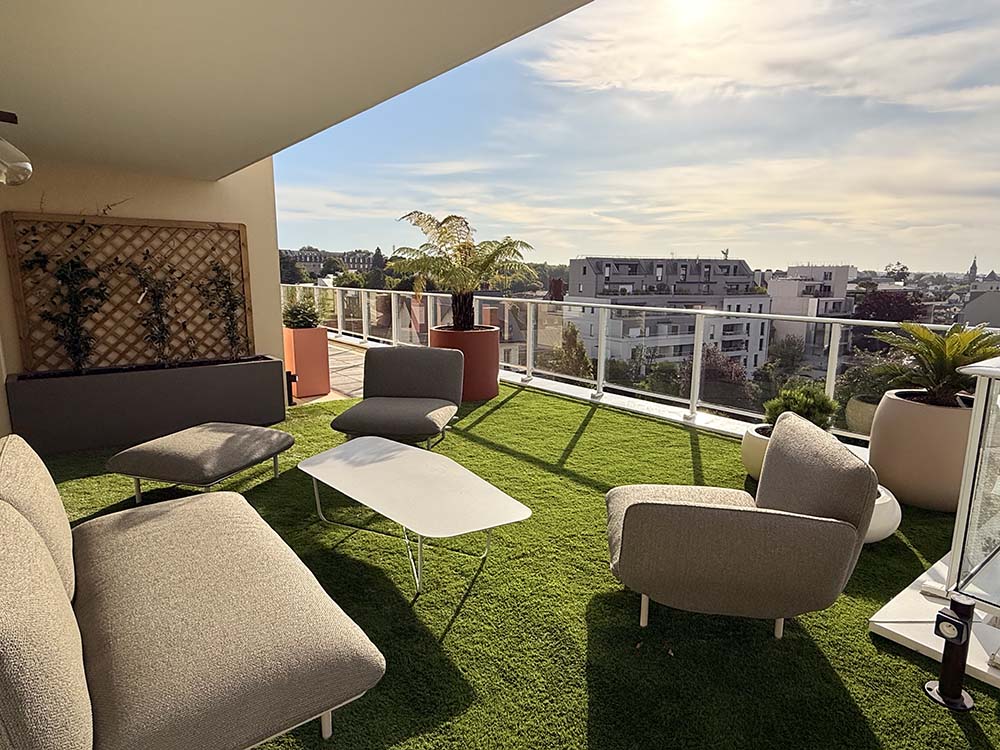 Un gazon synthétique à raccords invisibles a été mis en place.